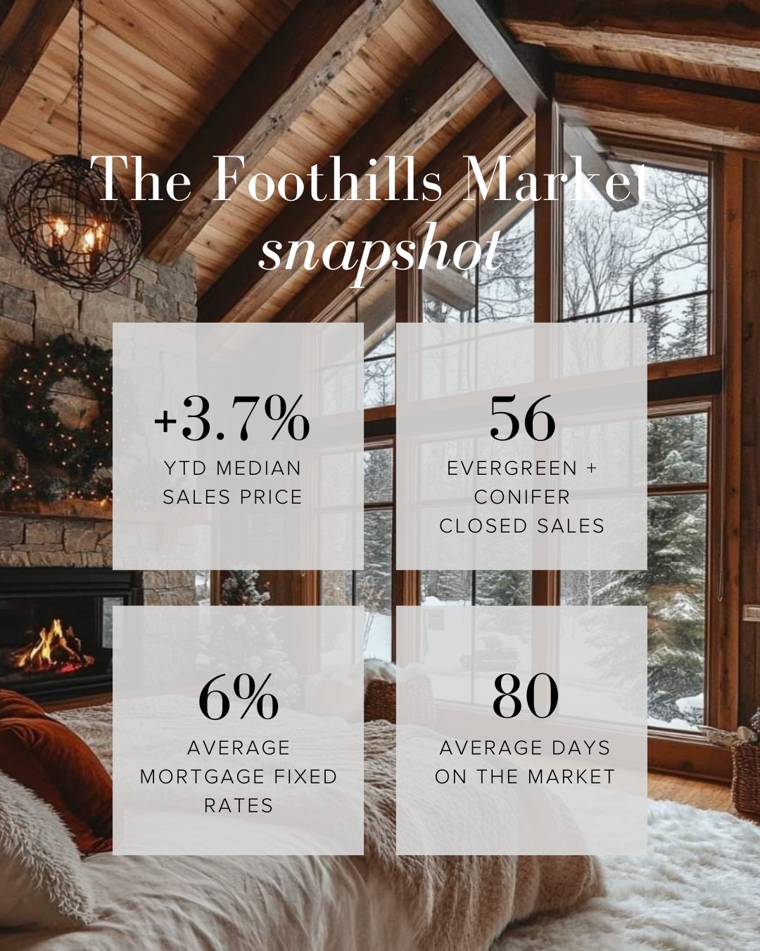 As 2025 wraps up, the Foothills enter winter on solid footing: inventory is higher, pricing is steady, and buyer activity remains more resilient than in many metro-area submarkets. With interest rates stabilizing, early 2026 is poised to bring a more balanced market for both buyers and sellers.